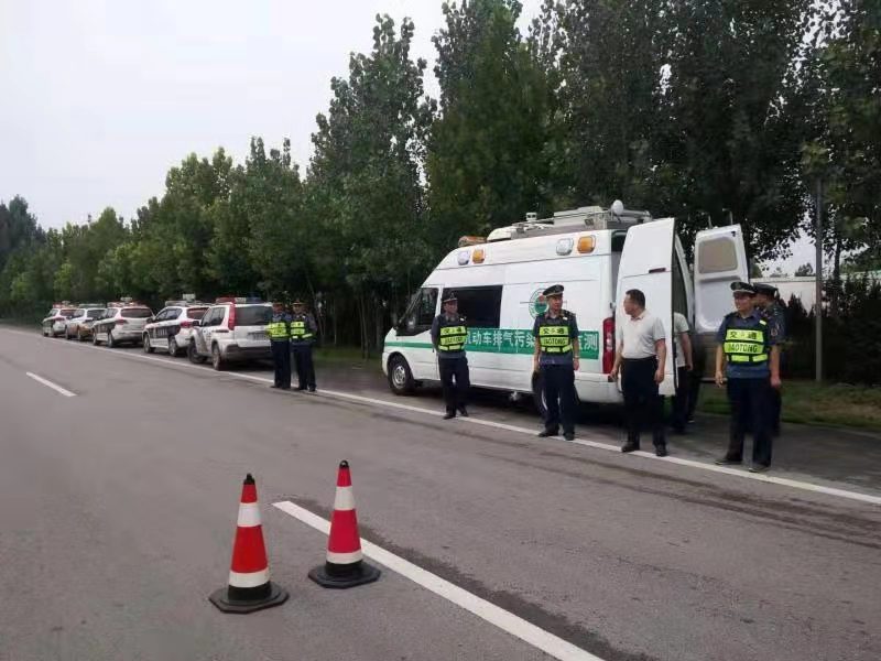8.1日,北京中环高科在山东省济宁市汶上县协助交管部门与环保局实行联合执法,ZHGK-1型移动车载式机动车尾气遥感监测车现县交通要道,检测并协助排查机动车尾气排放超标车辆。